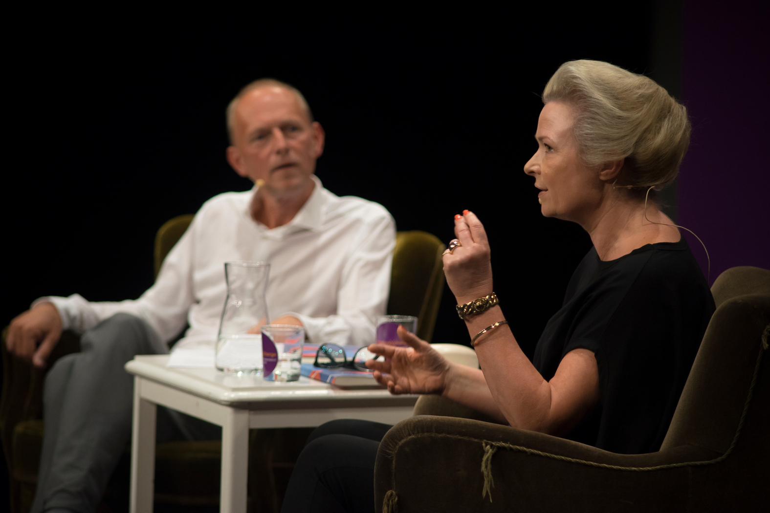Kamilla Löfström interviewer Vigdis Hjorth og Thomas Korsgaard på Godsbanen